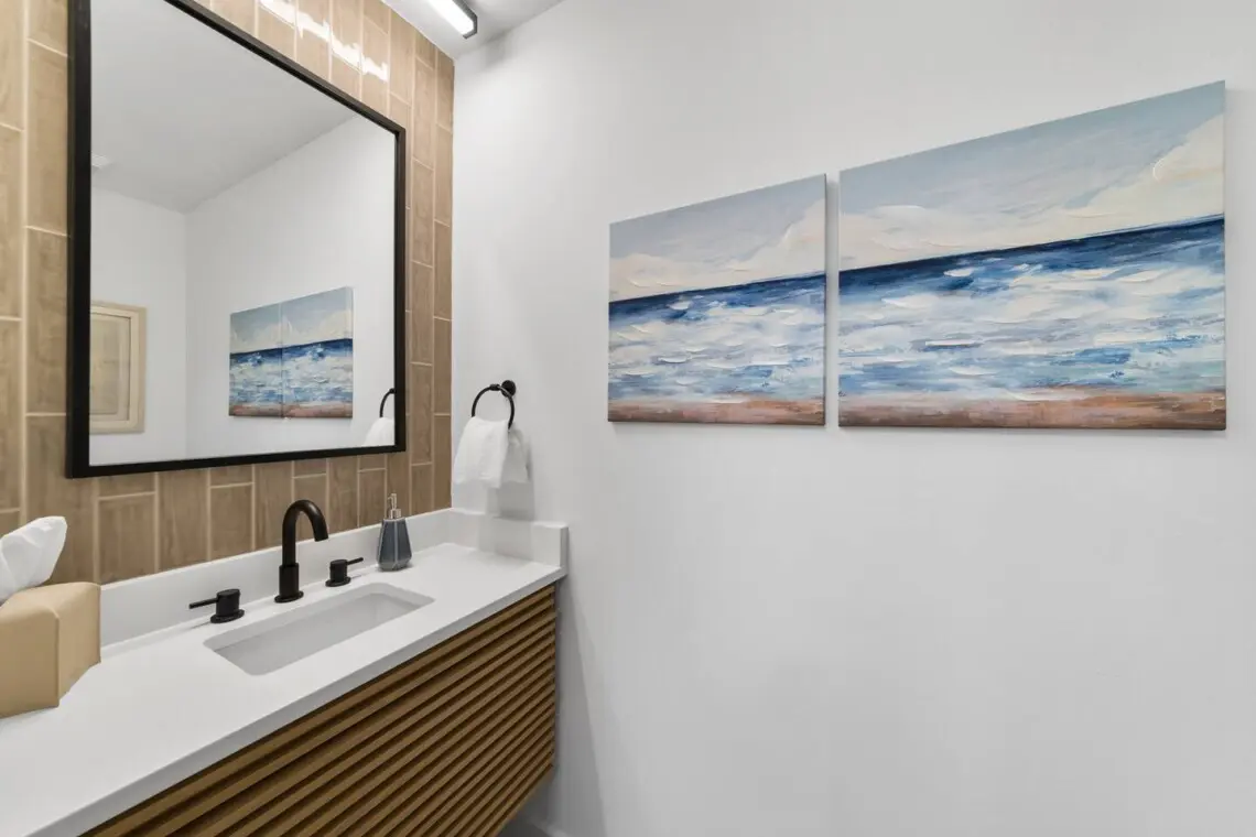 Two full bathrooms upstairs plus a convenient half bath downstairs. You’ll find a shower, bathtub, and hair dryer, so whether you’re rinsing off sand or getting ready for dinner, you’re covered.