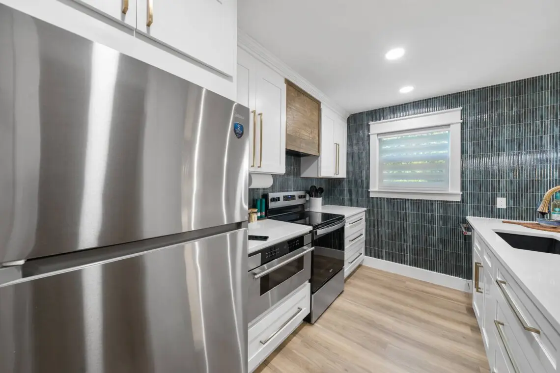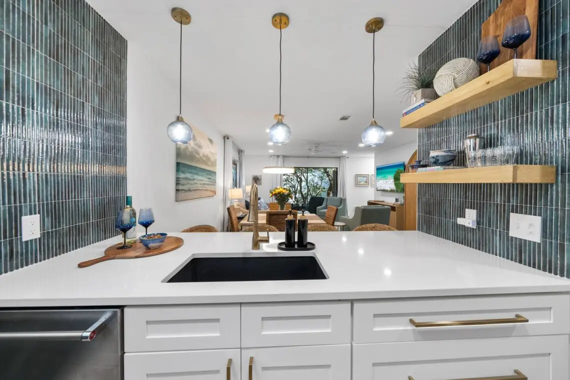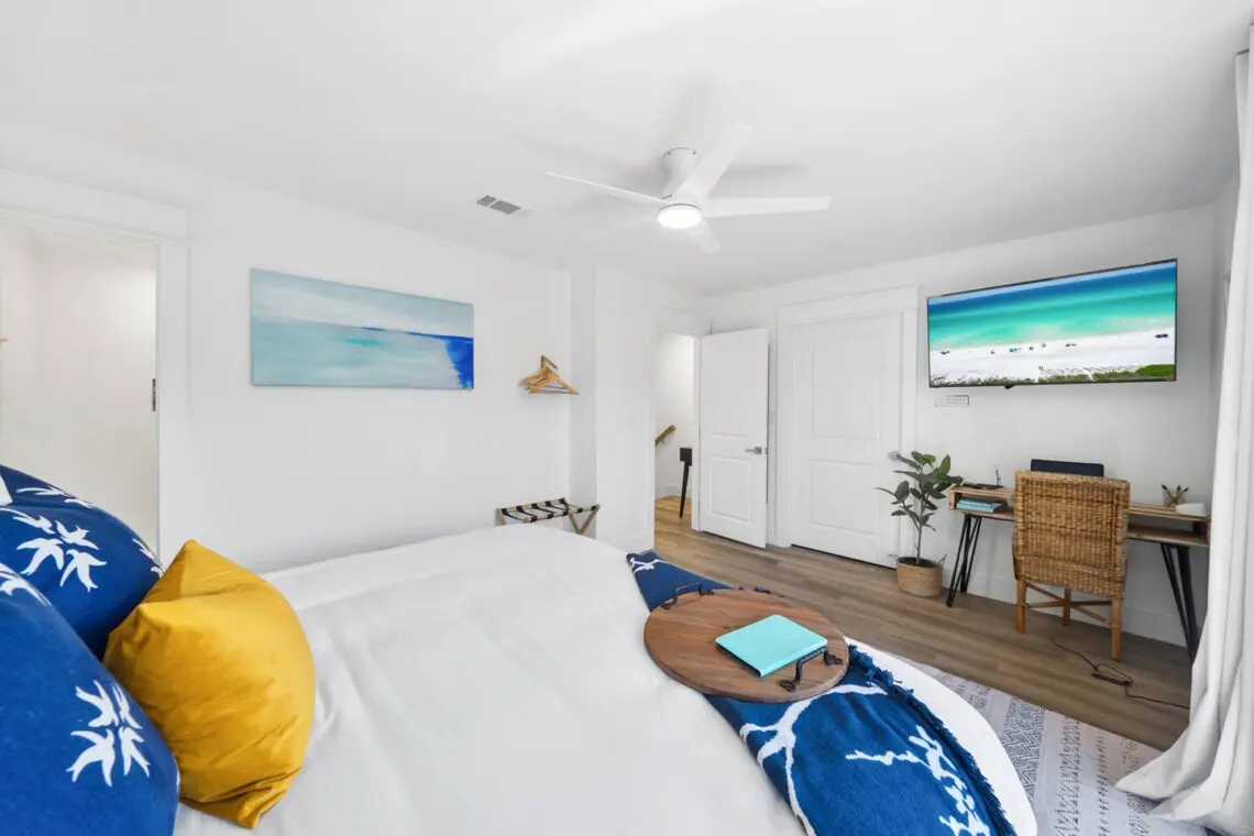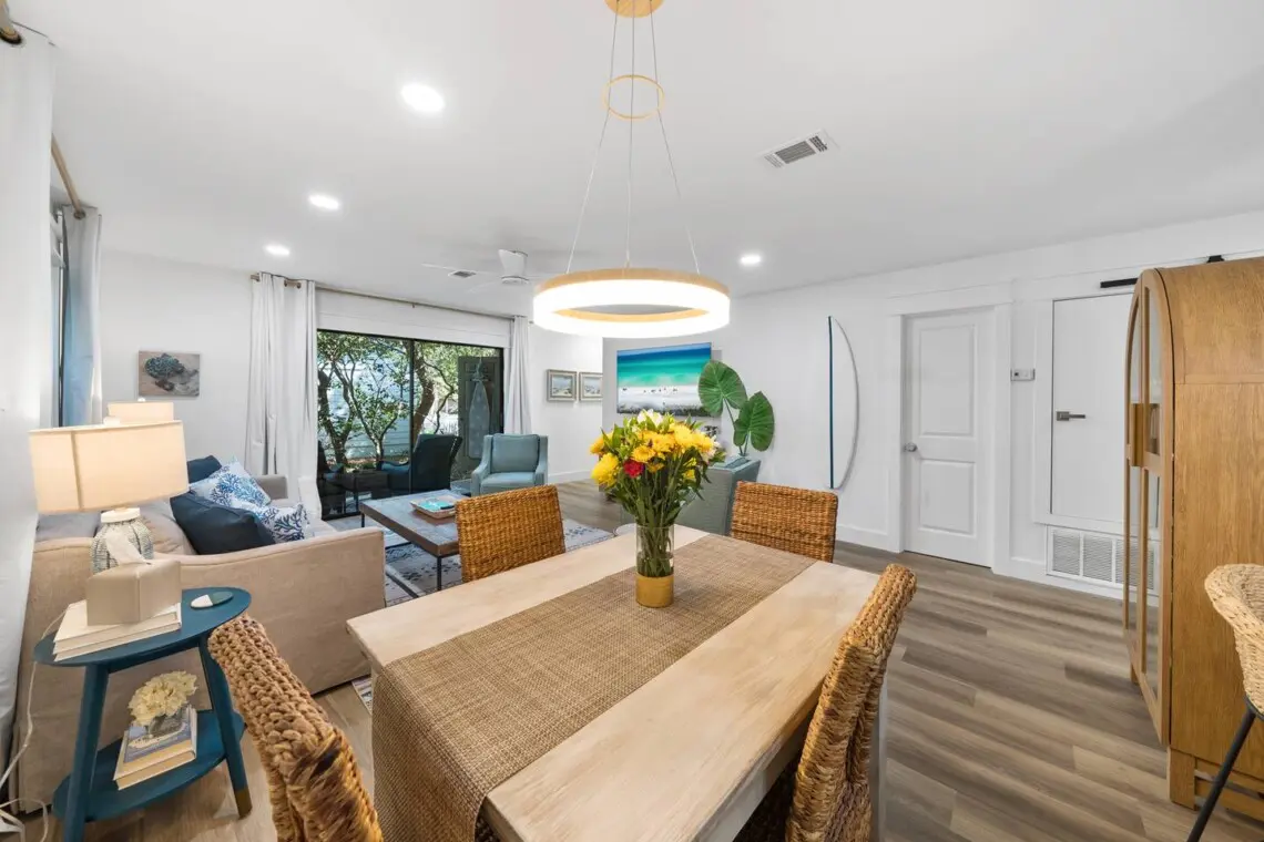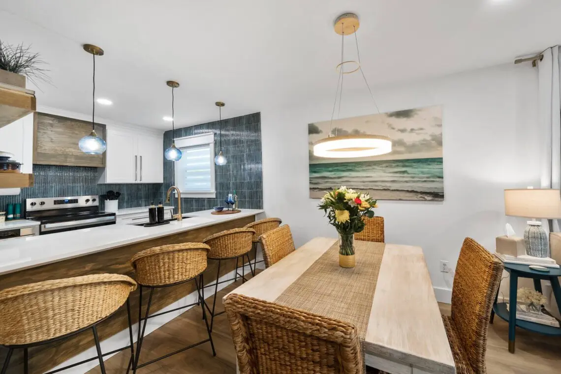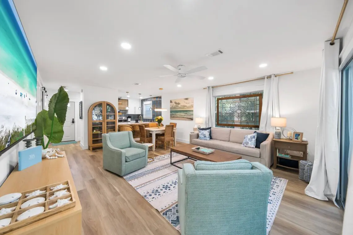 The open living area is designed for relaxing. Stream your favorite shows on the Smart TV, connect to fast WiFi if you need to check in on work, or unplug completely and plan tomorrow’s beach adventure. The kitchen is fully stocked for morning coffee, quick lunches, or easy dinners at home.