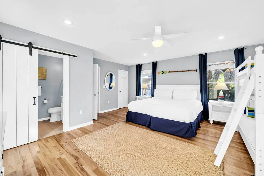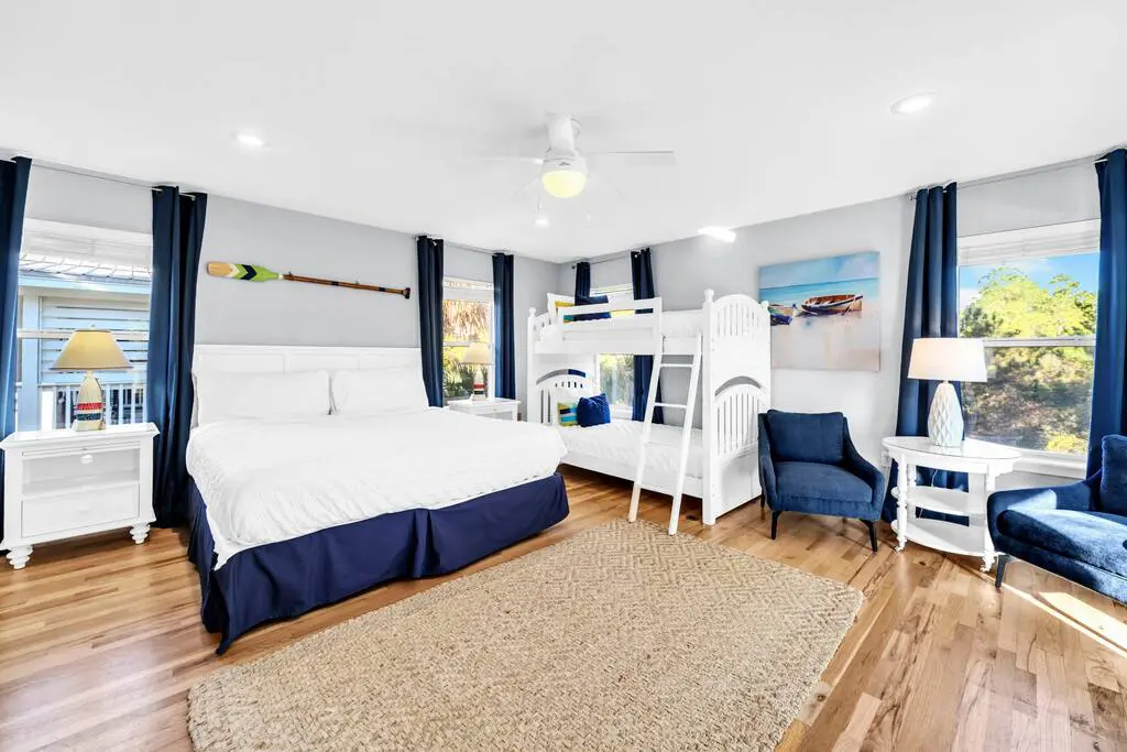 – Guest Suite with King bed + twin-over-twin bunks and private full bath