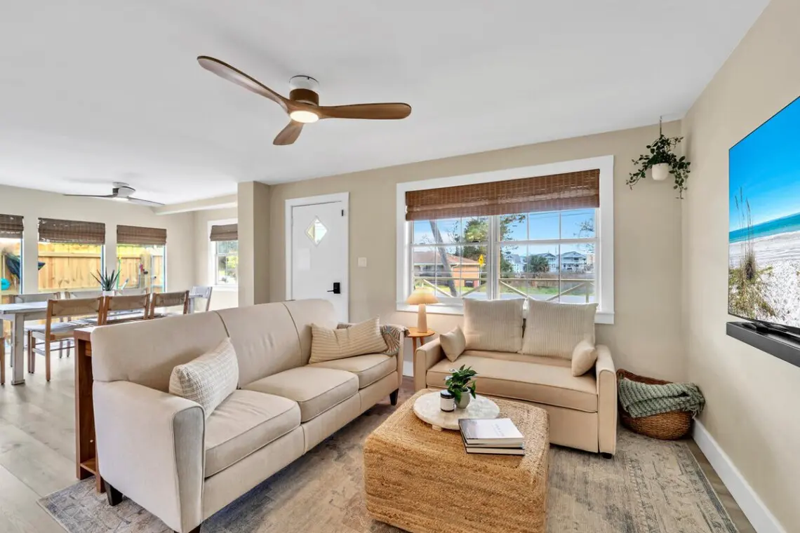 Lone Palm is your laid-back beach retreat blending timeless charm with modern luxury. Tucked into the quiet Riviera Beach neighborhood just a few blocks from the Gulf, this home is perfect for families, friends, and four-legged companions.