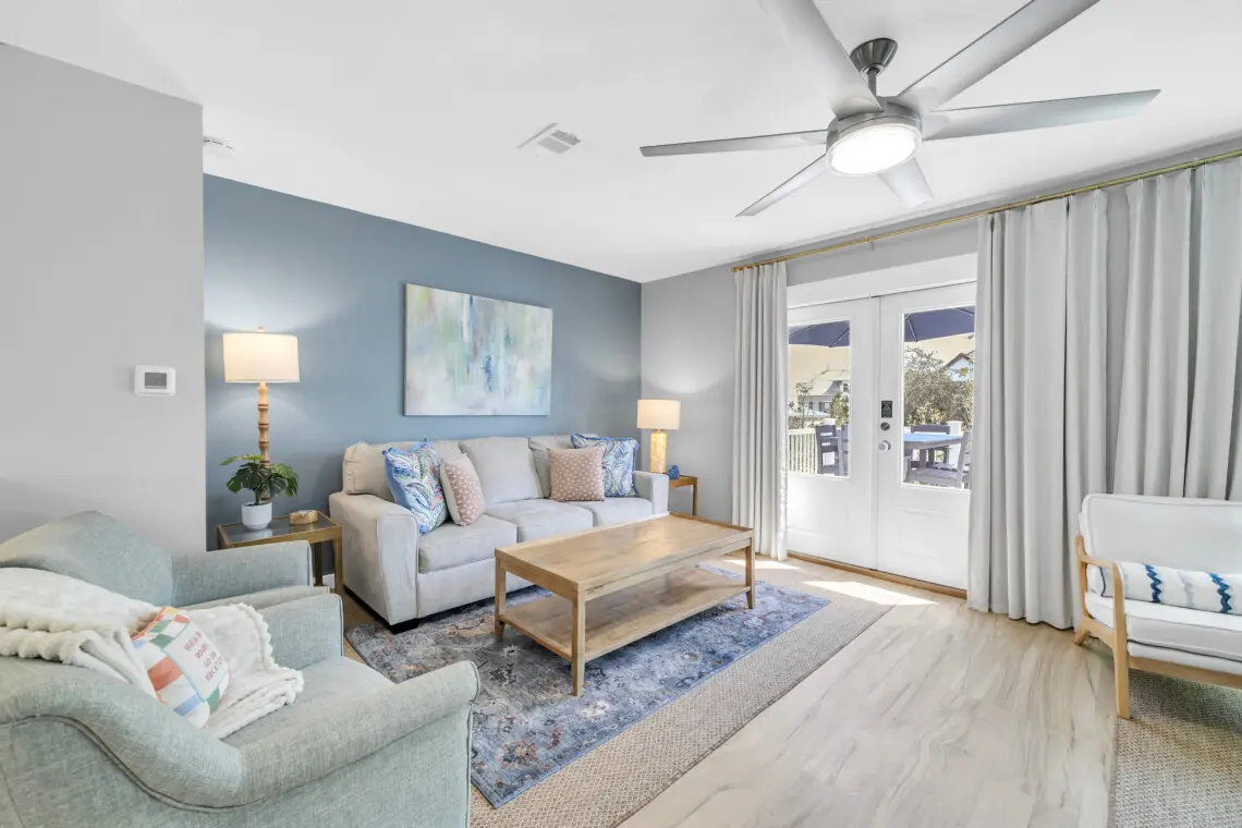 You’re surrounded by some of the most stunning natural features on 30A, including Grayton Beach State Park and Western Lake, one of the area’s rare coastal dune lakes. Whether it’s paddleboarding, biking shaded trails, or just spending the day on the sugar-white sand, everything here revolves around the outdoors.