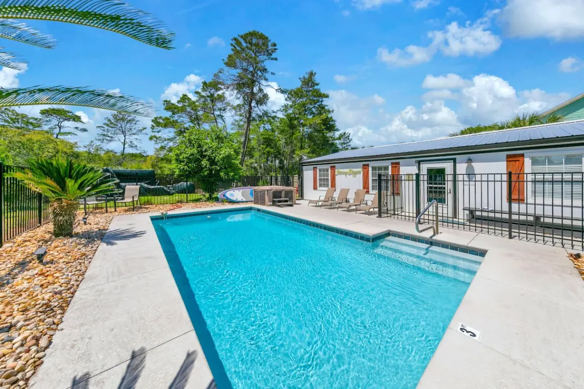 Welcome to The Surf Shack on 30A, your pet-friendly escape packed with fun and relaxation! Just a 4 minute drive to the beach, this vibrant 4 bedroom, 2 bathroom cottage features a private heated pool, hot tub, paddleboards, golf cart, arcade room, fire pit, and bikes. With room for the whole crew (and your pup!), it’s the perfect spot for beach days, bonfires, and 30A adventures.